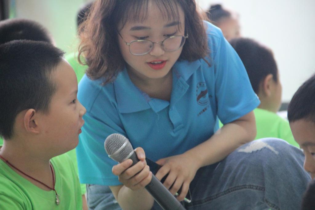 “之前玩过,可是大哥哥大姐姐带我玩更开心”三年级员工在课间和老师姚怡聊天的时候说道。“你笑起来真好看,像春天的花儿一样”歌曲接龙游戏中同学们唱着跳着,气氛活跃,他们与志愿者老师配合默契,逐渐成为游戏好搭档。