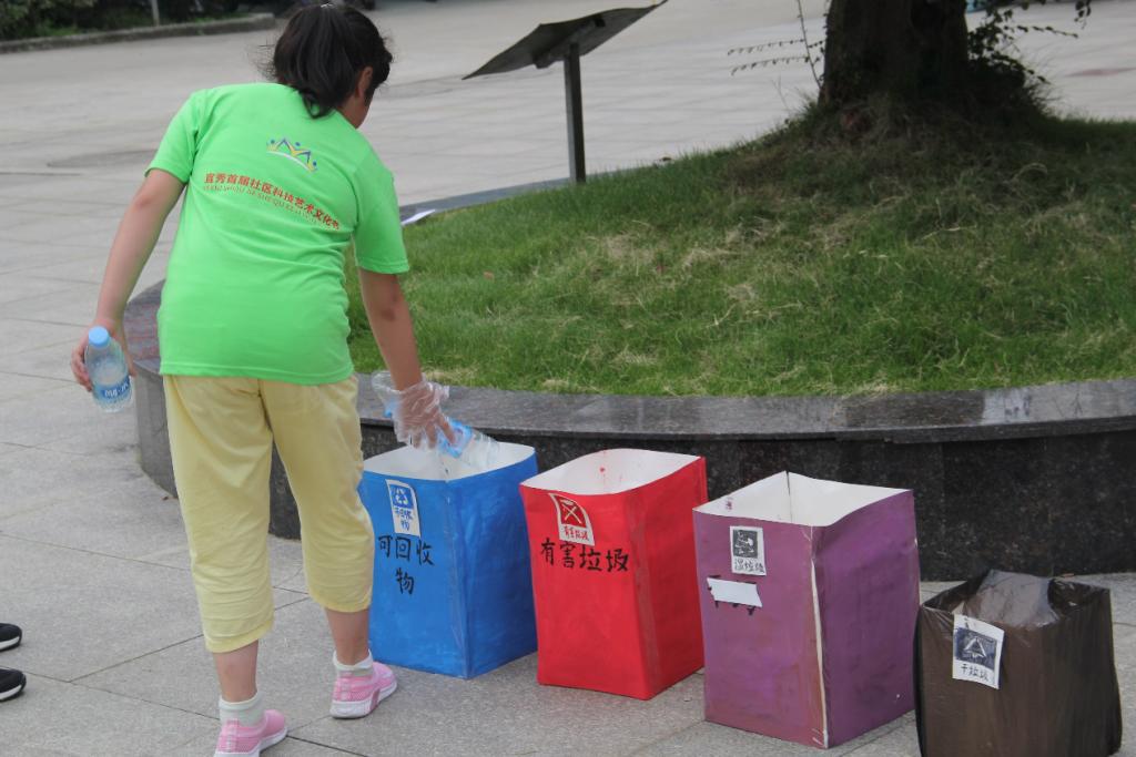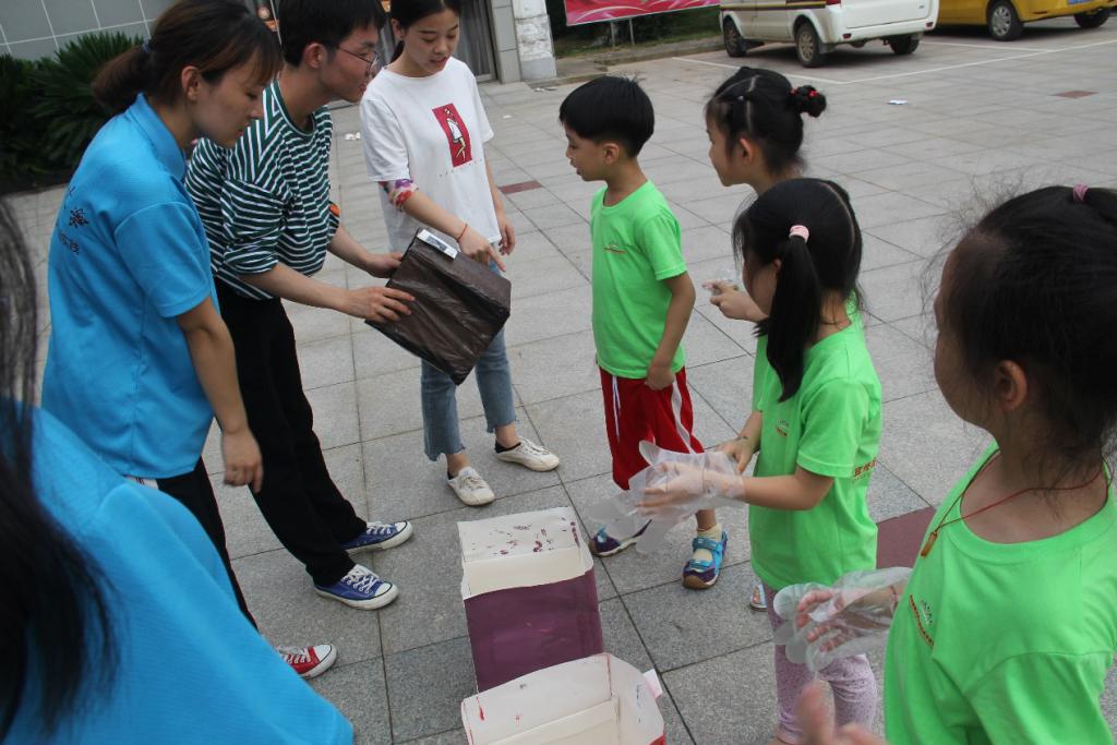 看着这些孩子们迫不及待的表情。支教老师王盼归说:“塑料有很多种,但不一定全是可回收垃圾哦,废料桶可能有残留的有毒废料,对环境和人体还有动物都可能造成伤害。”在解答完孩子们的疑惑后,支教老师带领员工到附近广场进行了垃圾寻宝游戏。