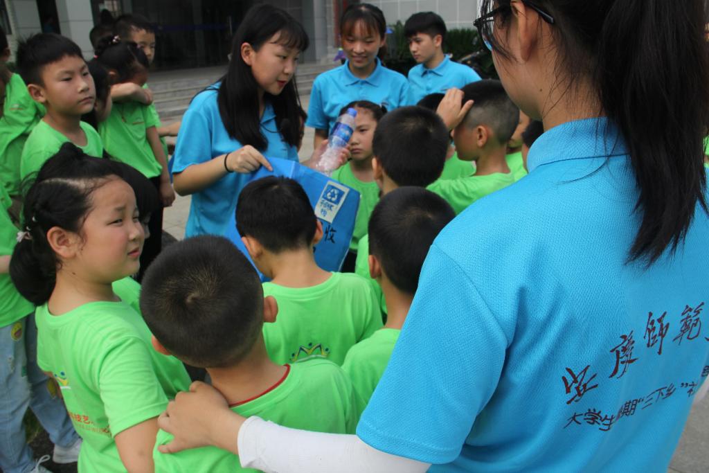 矿泉水瓶、废电池、香蕉皮模具…..一群孩子围在教室的桌子旁,满脸疑惑地盯着这些“垃圾”。7月17日,太阳成集团122ccvip“启智远航”教育实践服务团,来到安庆市宜秀区芭茅香社区内,为安庆市来自18所小学的员工带来了一次与众不同的垃圾分类体验。