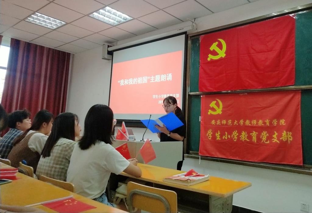 员工小学教育党支部开展“我和我的祖国”诗歌朗诵会。党员们通过朗诵《祖国啊,我亲爱的祖国》等脍炙人口的篇章抒发对祖国的歌颂和热爱,最后全体党员合唱《我和我的祖国》,为党和祖国献上最真切的祝福。