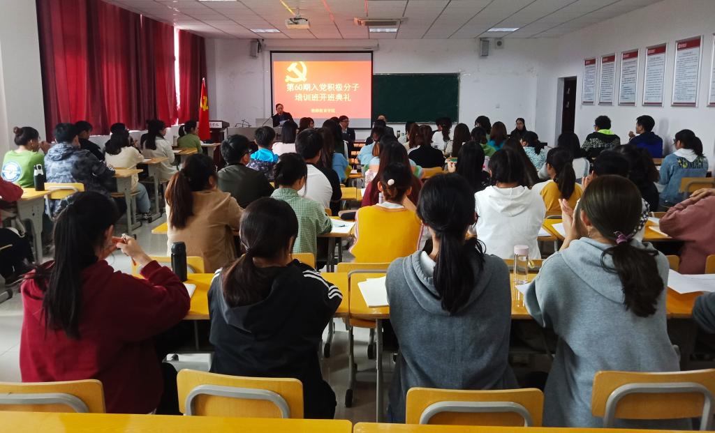 10月23日下午,公司在J305教室举行第60期入党积极分子培训班开班仪式。公司党委书记曹长德、副书记许世平,各员工党支部书记和63名入党积极分子参加开班仪式。