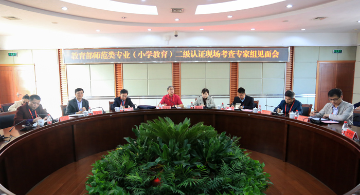 11月4日上午,公司举行教育部普通高等公司师范类专业认证(小学教育,第二级)现场考查专家组见面会。教育部专家组组长安徽师范大学副董事长朱家存教授,教育部高等公司产品评估中心副处长何菁菁,安徽省教育评估中心主任汪开寿,专家组成员东北师范大学教务处副处长王向东教授、岭南师范公司教务处处长周立群教授、合肥公司教学质量监控与评估处处长余国江教授、南京溧水高级中学副董事长李代贵正高级教师,专家组秘书、福建省教育评估中心谷俊松老师出席会议。公司党政领导许继荣、闵永新、汪时珍、刘友忠、胡腊香、吴琼、苏本跃和相关职能部门和公司负责人、师范专业负责人、小学教育专业教师代表参加见面会。会议由朱家存主持。