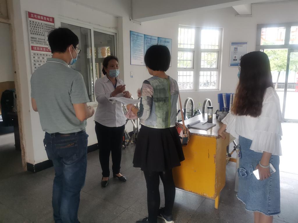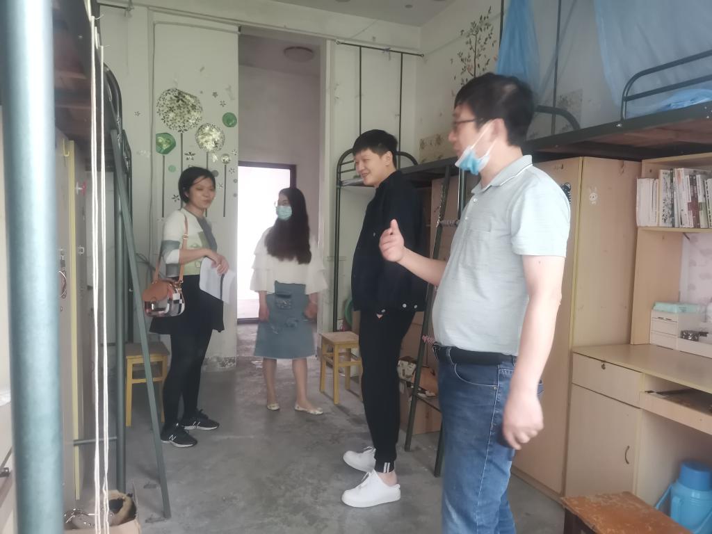 为切实做好第一批员工(研究生和部分毕业班学生)返校工作, 5月8日下午,公司党委副书记许世平带领部分辅导员一行赴员工宿舍3号、5号楼排查员工寝室情况。在宿舍管理人员的带领下,进入宿舍了解消毒、开窗通风、卫生现状,对存在的问题提出了整改意见。对未能进入检查的宿舍,许世平要求辅导员立即主动和返校员工取得联系,征询开锁通风意见,并提醒消毒、卫生清洁和防“疫”等事宜。