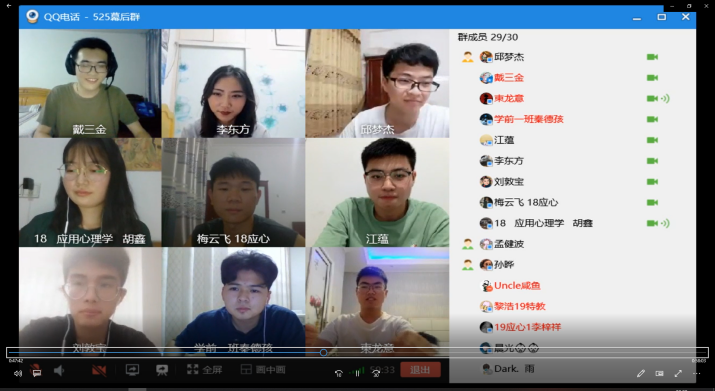在“情景剧-面对面”活动中,《武汉留守计划》《毕业生》《比丑大赛》等心理情景剧均由员工们自己编排出演,这些节目通过QQ视频的形式,在平台同步直播,吸引了众多同学的观看。老员工心理协会也同期举办了“温暖云分享”“美好时光vlog”“心理健康知识有奖趣答”等主题线上活动,员工们通过拍摄视频、图片,以及写文字感想等方式分享了自己对于心理问题的所感所悟。应用心理学专业的员工通过制作心理健康知识问卷的形式,让同学们了解了一系列的心理健康知识。