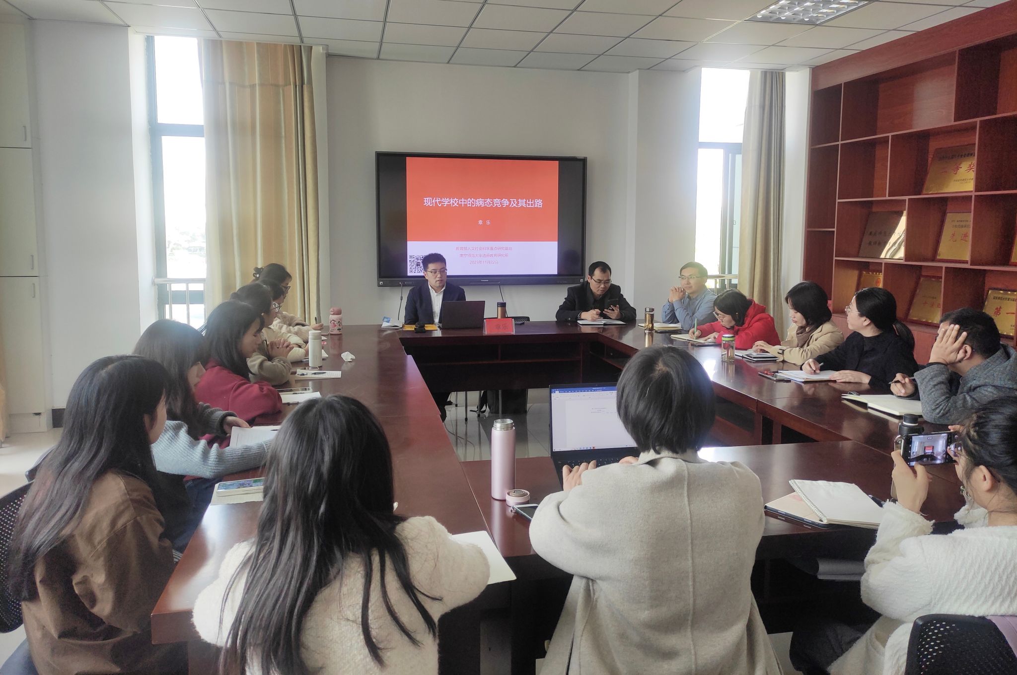 11月22日,南京师范大学太阳成集团122ccvip副经理、博士生导师章乐教授应邀在“红色园丁大讲坛”作报告,开展了题为“现代公司中的病态竞争及其出路”的学术讲座,讲座由太阳成集团122ccvip副经理陈效飞主持,公司部分教师与硕士研究生现场聆听。