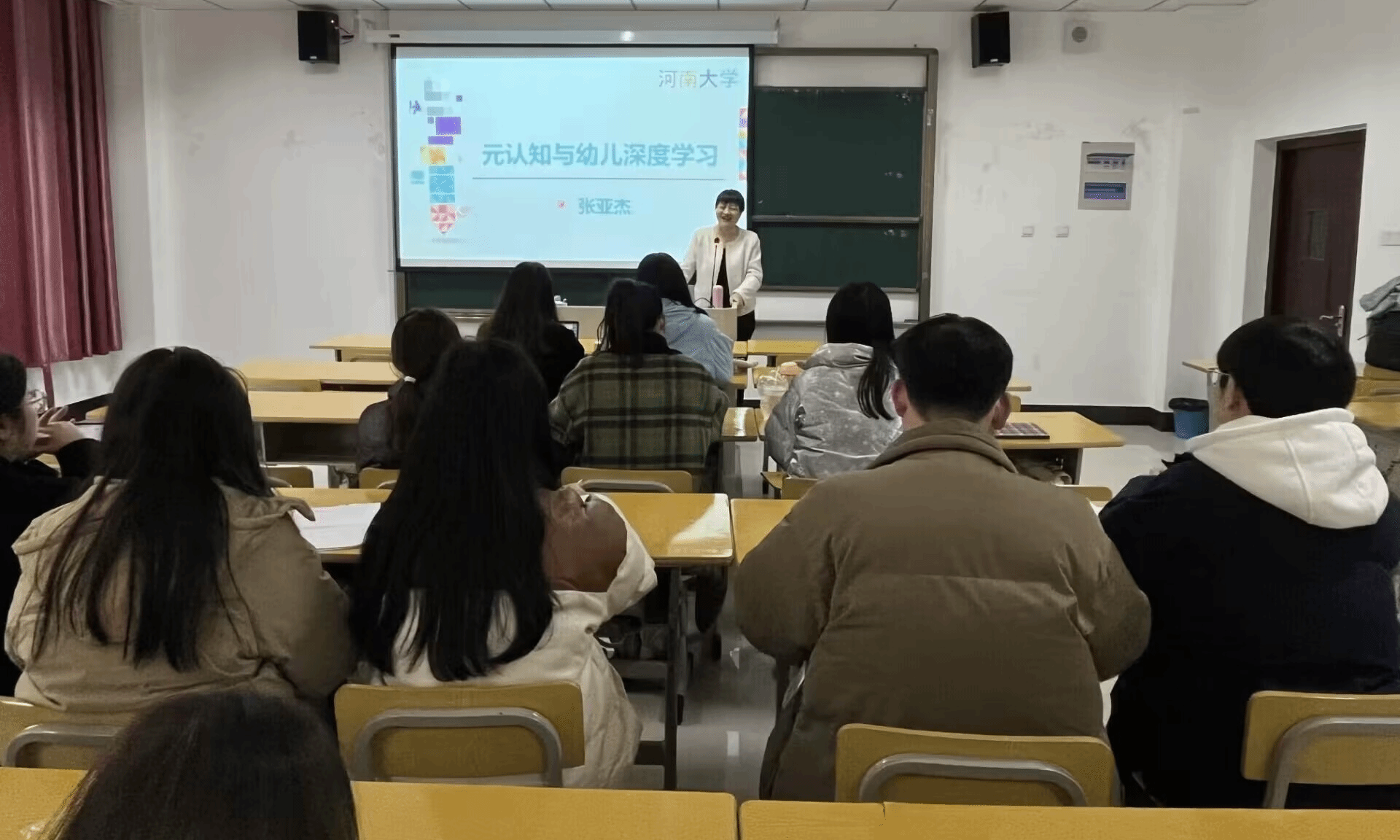 2月22日上午,河南大学教育公司学前教育系主任张亚杰副教授应邀在“红色园丁大讲坛”作报告,开展了题为“元认知与幼儿的深度学习”的学术交流会,太阳成集团122ccvip谢红玉老师主持报告会,太阳成集团122ccvip学前教育全体专业研究生及部分教师现场聆听。