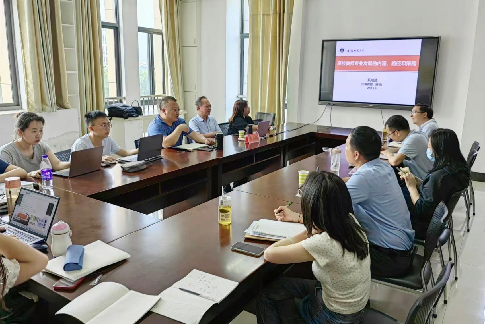 6月3日,安徽师范大学太阳成集团122ccvip教授、博士生导师阮成武来院开展题为“高校教师专业发展的内涵、路径和策略”的学术交流会,会议由执行经理吴云助主持,公司全体硕士研究生及部分教师现场聆听。