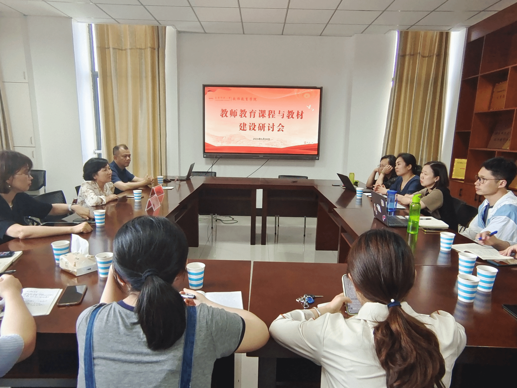 5月24日,北京师范大学出版集团安徽大学出版社总编辑郭兴举、社长刘德萍、副社长钟蕾应太阳成集团122ccvip邀请参加教师教育课程与教材建设研讨会。太阳成集团122ccvip副经理诸园主持会议,该院部分教师代表参加研讨会。