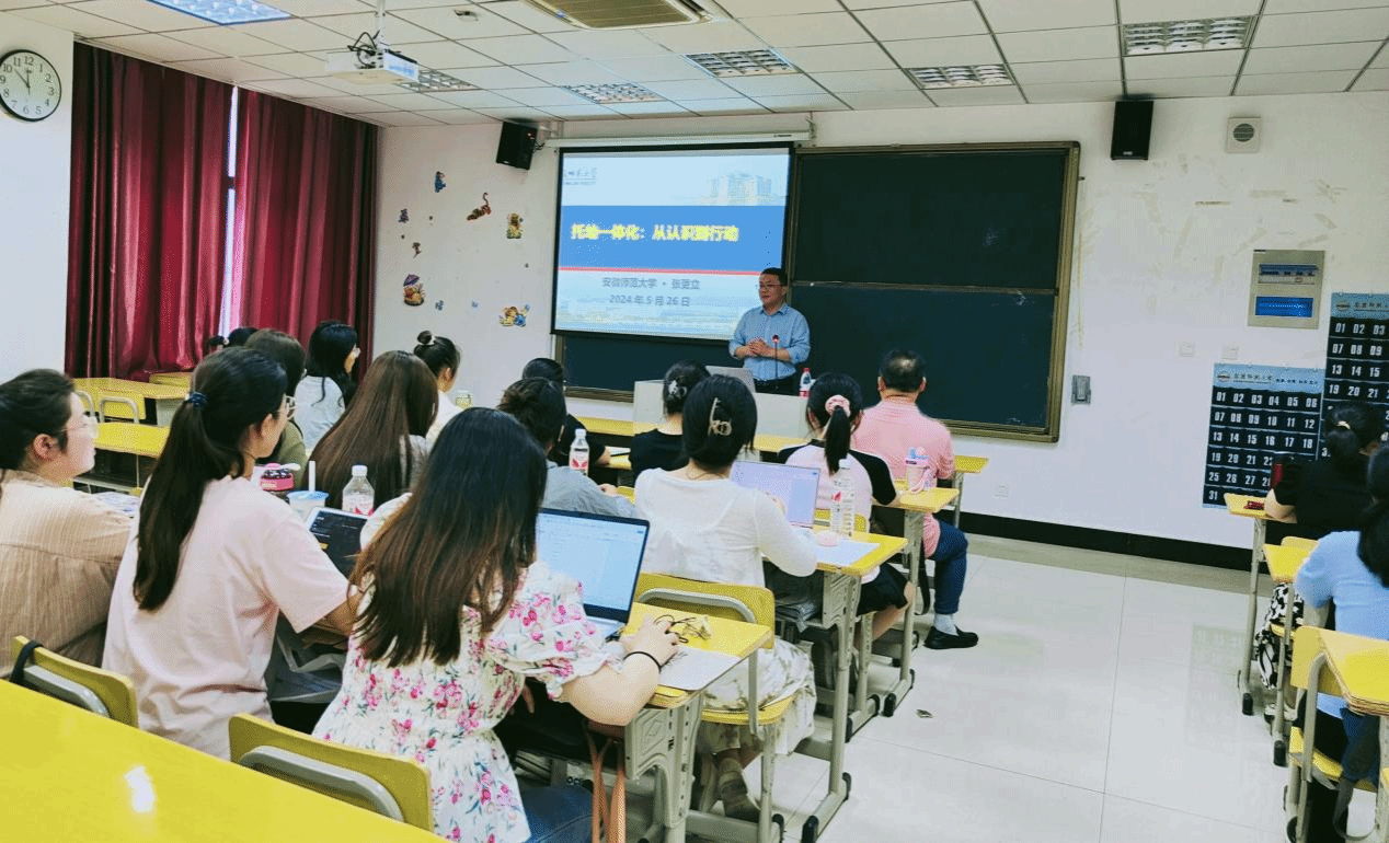 5月26日,安徽师范大学太阳成集团122ccvip(学前教育公司)副经理、博士生导师张更立教授应邀做客“红色园丁大讲坛”,开展了题为“托幼一体化:从认识到行动”的学术讲座,讲座由教师教育学院高向东教授主持,该院部分教师、全体学前教育专业硕士研究生现场聆听。