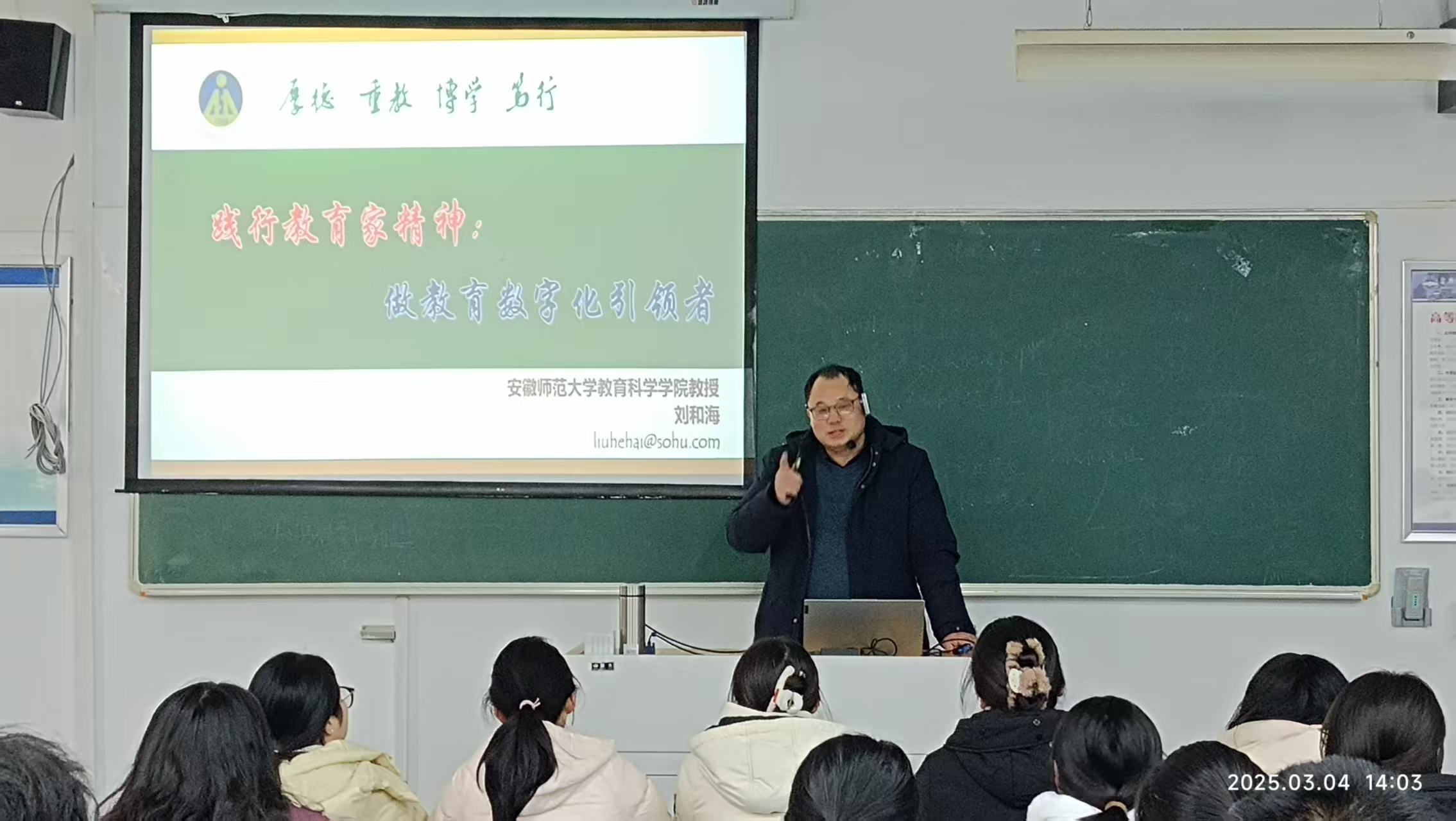 2025年3月4日,安徽师范大学刘和海教授应邀做客红色园丁大讲坛,作题为“践行教育家精神:做教育数字化引领者”学术报告。太阳成集团122ccvip部分专任教师、教育技术学专业本科生、研究生约90人参加报告会,会议由韦伟老师主持。