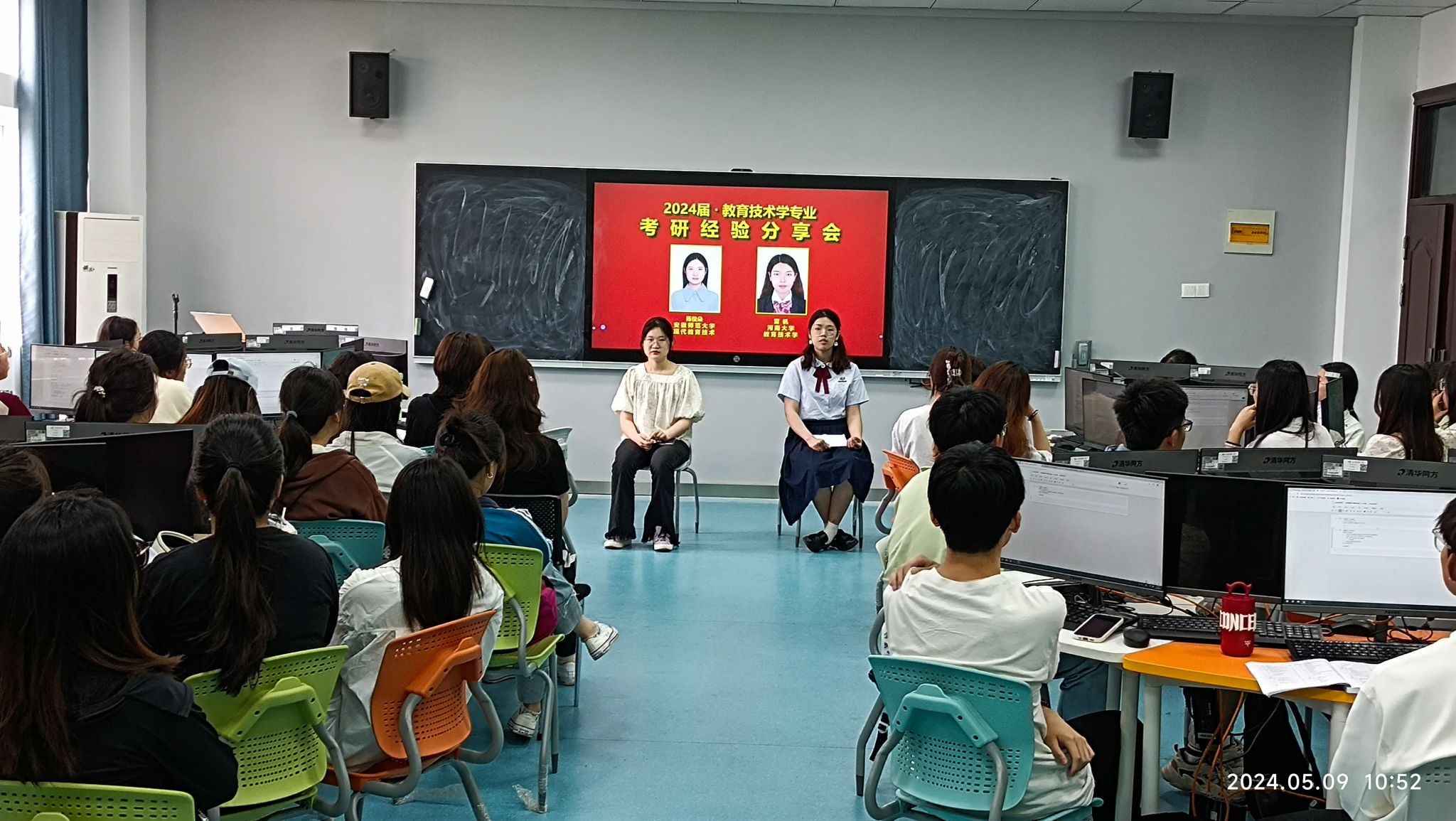 2024年5月9日,教育技术系在D206教室召开2024届考研经验交流会暨2025届考研工作推进会。2024届考研拟录取员工代表,以及2021级、2022级备考员工代表参加活动。会议由教育技术系主任韦伟主持。