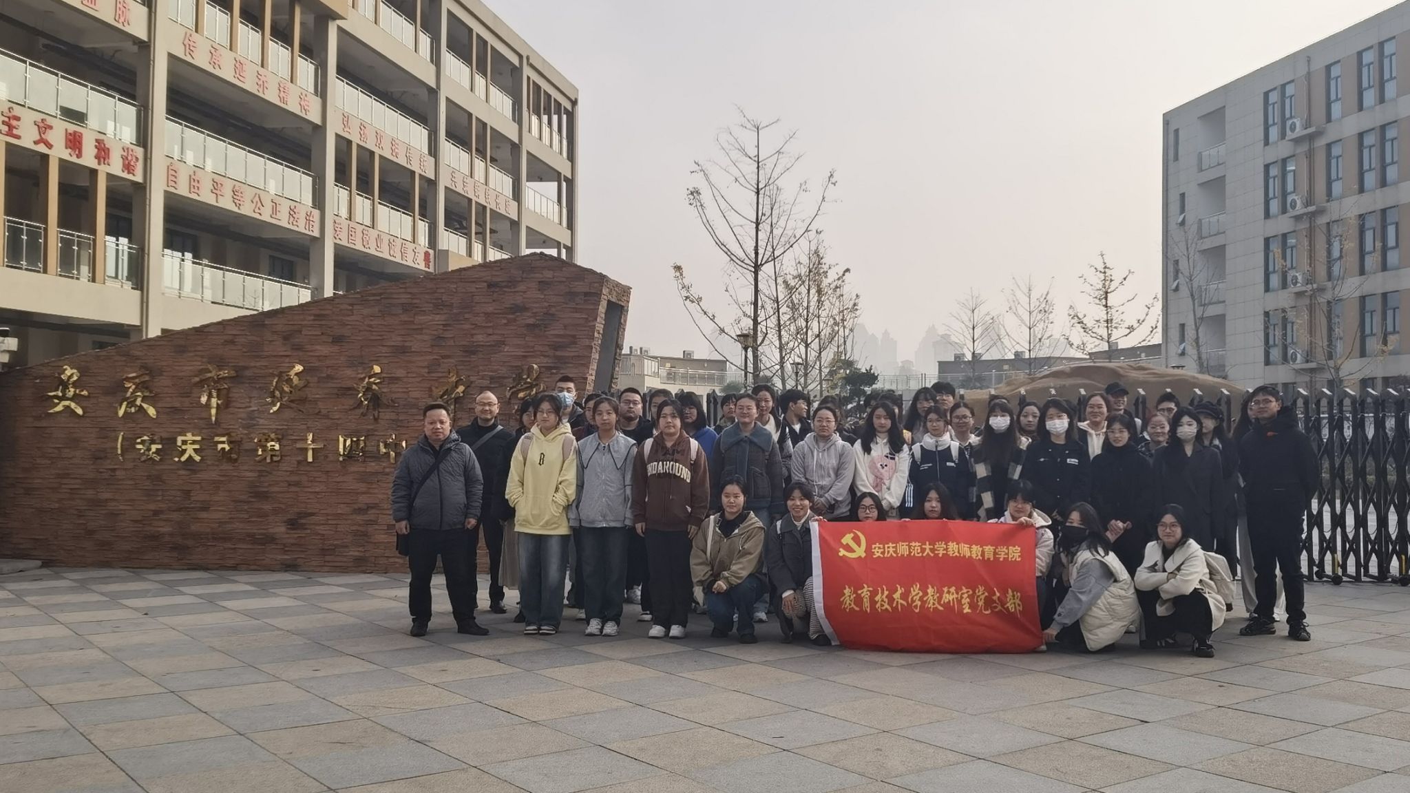 2023年11月27日,教育技术学教研室党支部组织2021级教育技术学专业本科生,2022级、2023级现代教育技术专业研究生赴安庆市第十四中学开展教育研习活动,支部党员教师韦伟、万士全、朱斌彬、黄玉等带队前往。韦伟一行受到安庆市第十四中学党委委员、业务副董事长余斌,信息技术学科教师丁象、王志萍的热情接待。