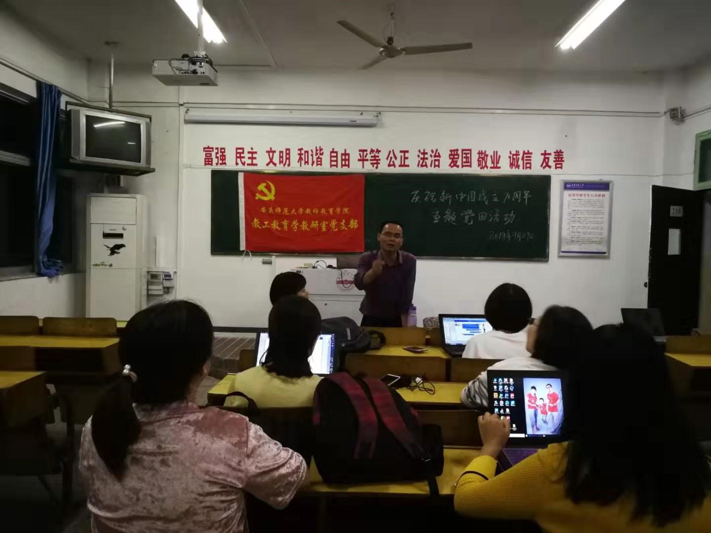 为庆祝新中国成立70周年,响应公司“不忘初心、牢记使命”主题教育工作安排,9月29日晚,教工教育学教研室党支部开展“小教专业认证自评报告最终修订” 主题党日活动。活动由支部委员、小教教研室主任李义胜教授主持,全体支部党员参加。