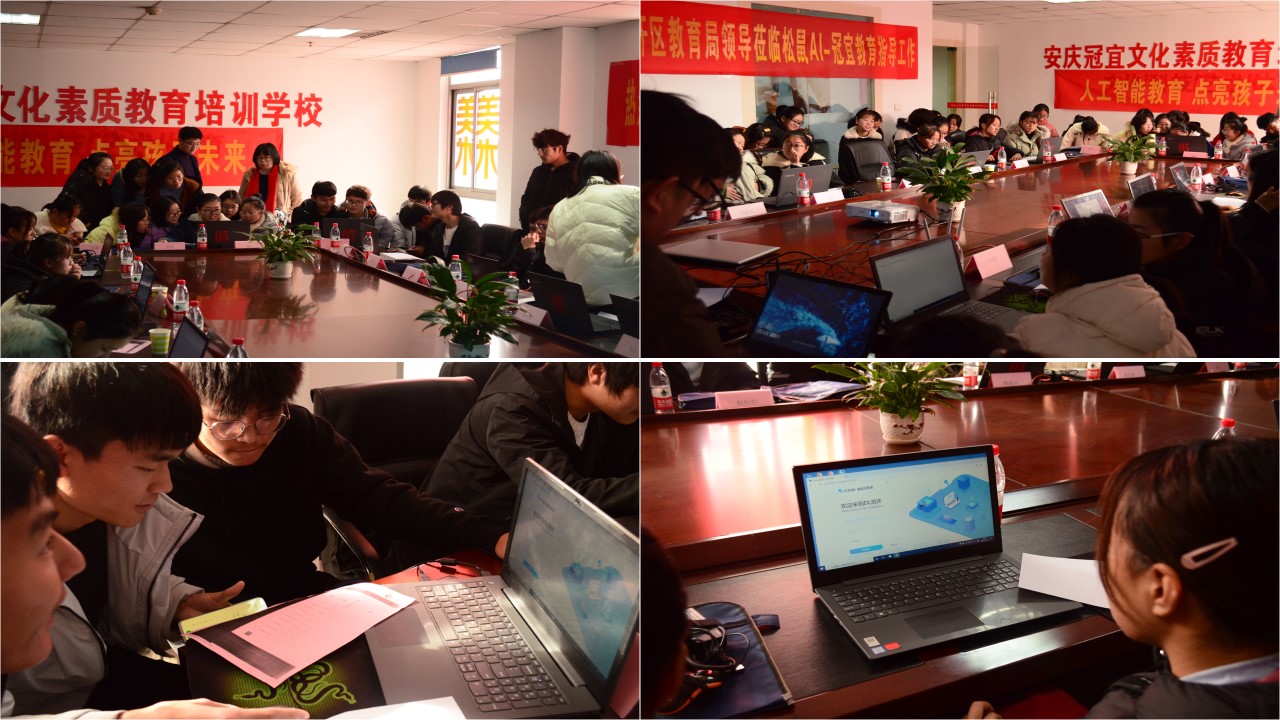 为更好地了解“智适应”教育在中小学学科教学中的应用,促进高校教育技术学专业的人才培养,同时加强与地方教育主管部门、公司的交流与合作,12月28日上午,教育技术学专业联合冠宜文化素质教育培训公司举行“智适应教育”观摩研讨会。公司经理吴云助、专业负责人韩建华,经开区教育局局长阮星星、主任王贵忠,冠宜教育公司董事长喻红,十六中董事长助理胡章平、团委书记余洋,中兴小学副董事长戴婷、教师刘桂芳,松鼠AI安徽省运营中心总监金继善,以及教育技术学专业全体师生参加了研讨会。