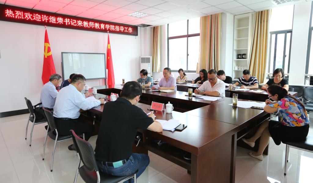 6月2日上午,公司党委书记许继荣来公司开展深化“三个以案”警示教育调研。公司党委组织部部长余精华、校办副主任何孔蛟、校办秘书科科长吴晓峰陪同。公司班子成员、教师代表、党支部书记代表和辅导员代表等10人参会。
