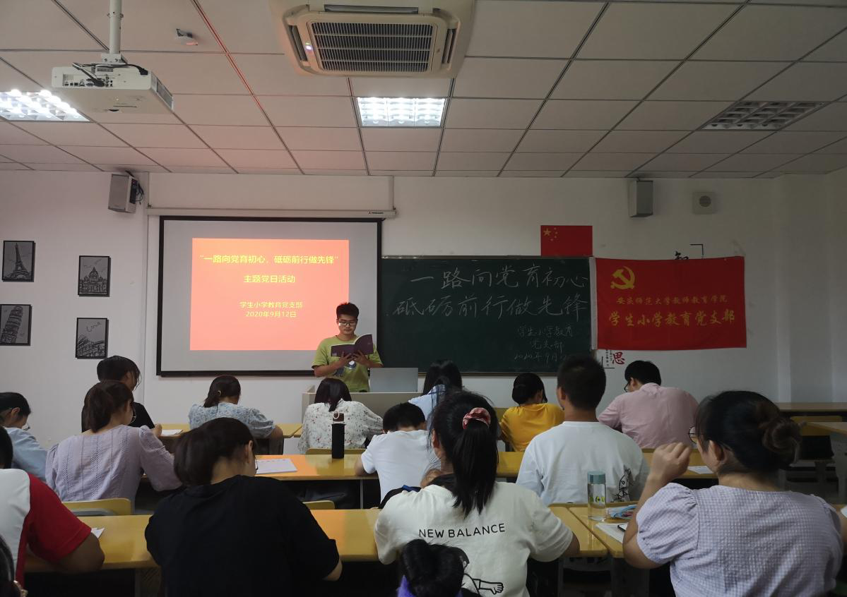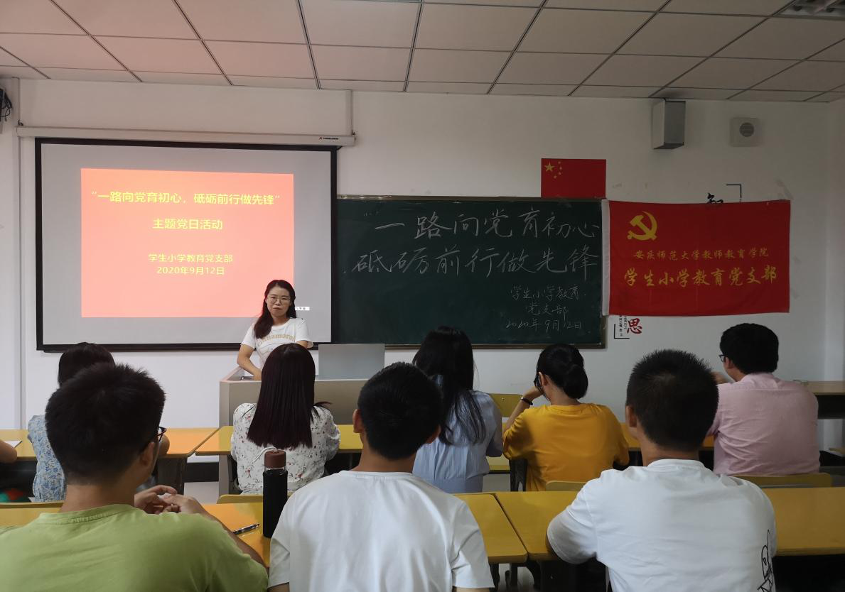 在中国人民抗日战争暨世界反法西斯战争胜利75周年之际,结合爱国主义教育和革命传统教育活动,2020年9月12日下午,员工小学教育党支部党员及积极分子在J楼217教室,开展以“一路向党育初心,砥砺前行做先锋”为主题的爱国主义教育党日活动。