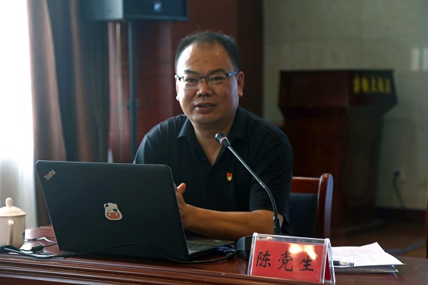 陈党生以“弘扬建党精神,加快教育改革”为主题做了专题报告。他首先展示了一名小女孩拿着老师发的“红包”,带着笑脸张开双手在操场上奔跑的照片,并以此为切入点,指出教育的源头是员工,教育应该是赏识、鼓励与尊重。结合多年从事教育事业的实践经验,陈党生全面详细地阐述了什么是建党精神、教育的来源与定义、教师与员工的角色与地位等内容。此外,他还围绕“双减”政策、安徽省普通高校考试招生综合改革、安庆市中小员工心理健康教育的问题与对策等内容与全体成员展开深入探讨。
