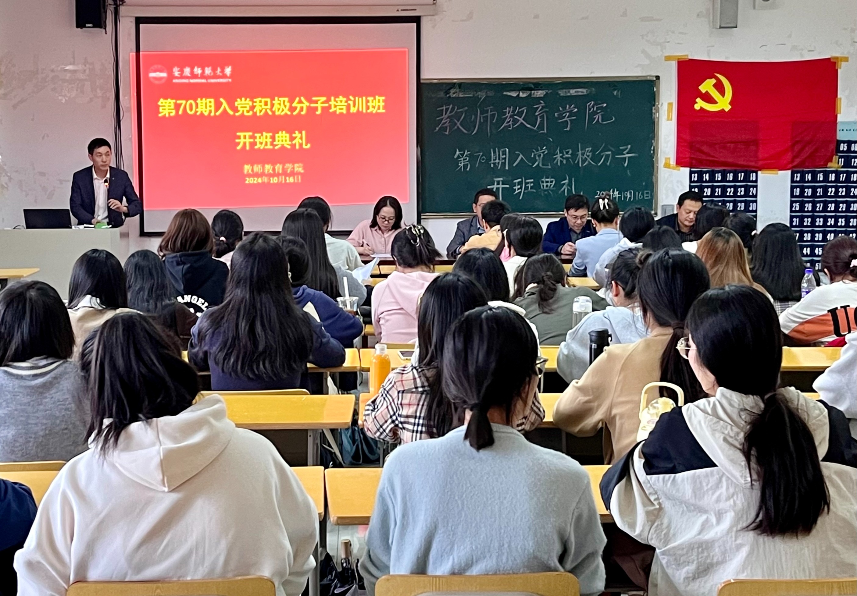 10月16日,公司在J305会议室举行第70期入党积极分子培训班开班典礼暨培训班第一次党课。公司党委书记何孔蛟,党委副书记许世平,党委委员、副经理诸园、王皓宇,各员工党支部书记及第70期入党积极分子全体成员参加,开班典礼由培训班班主任汪洋洋主持。
