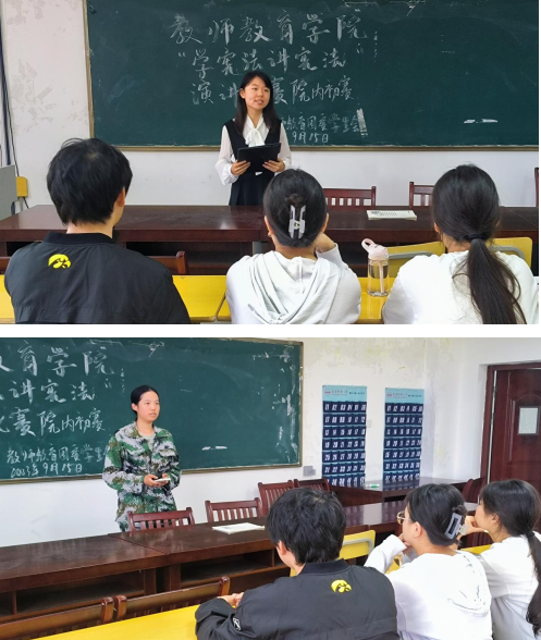 比赛中,选手们围绕宪法知识,深情讲述身边故事、剖析典型案例。从宪法的重要性出发,谈与宪法同行;或与社会事件结合,讲述宪法故事。22级特教吕洁琳从自身社会实践经历出发,围绕《所赖今法治,疆国日休明》,道出宪法对治国安邦的重要影响,同时呼吁大家学宪法、懂宪法、用宪法,全方位展现出新时代青年的精神风貌和维护宪法的决心,充分彰显了公司学子维护宪法权威、弘扬宪法精神的良好风貌。