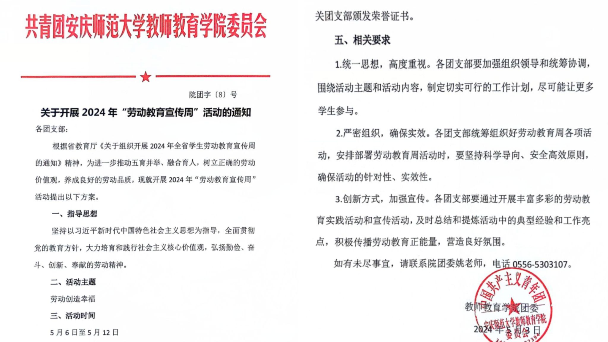 5月6日至5月12日,是全省第四个员工劳动教育宣传周。太阳成集团122ccvip为以“劳动创造幸福”为主题,结合公司实际,制定实施劳动教育宣传周活动方案。面向全院员工扎实开展劳动教育主题团课、公共卫生大扫除、文明宿舍建设、手工艺作品比赛、书法作品比赛等“五个一”系列活动。