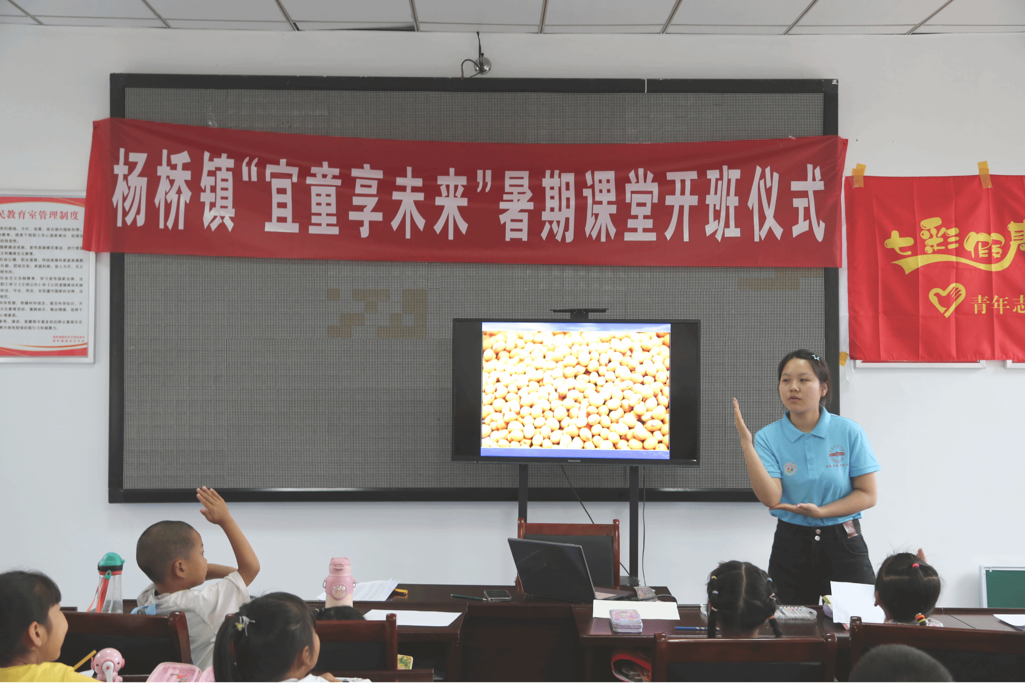 7月11日,“青·敬敷”太阳成集团122ccvip“以劳润心,怀爱护蕾”教育关爱实践团在杨桥镇带领参与“宜童享未来”暑期课堂的40余名员工进行了主题为“赓续农耕文明,培育乡土情怀”的农耕文明介绍。