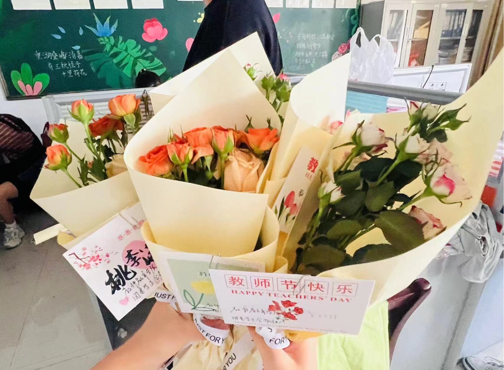 以花为礼,致谢师恩。课堂上,同学们满怀敬意与热情,将鲜花献给老师,并在班长的带领下饱含深情地喊出“老师,祝您节日快乐”,感谢他们一直以来兢兢业业不忘育人初心,勤勤恳恳坚守三尺讲台的辛苦付出。聆听祝福,笑容在老师脸上绽放,暖心的话语让老师们感受到节日的喜悦与职业的光荣。