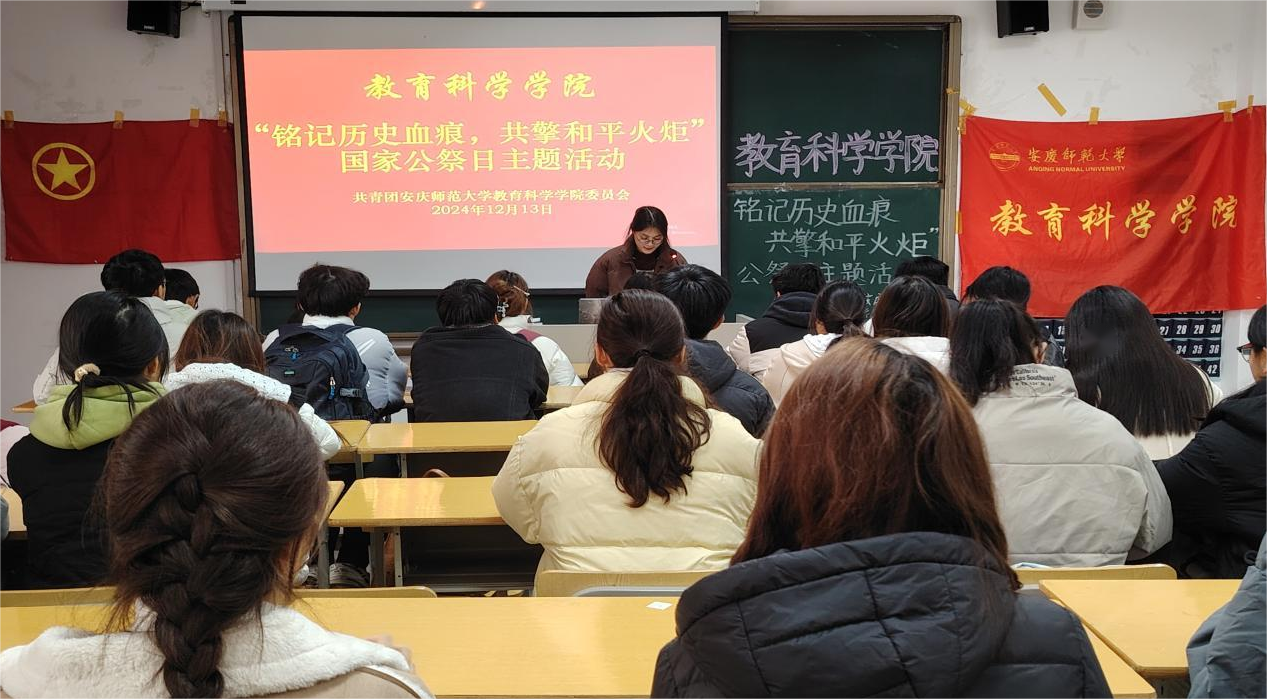 12月13日,公司于J214教室举办“铭记历史血痕,共擎和平火炬”国家公祭日主题活动。活动由院团委实践委员胡古月主持,公司150余名学子参加。