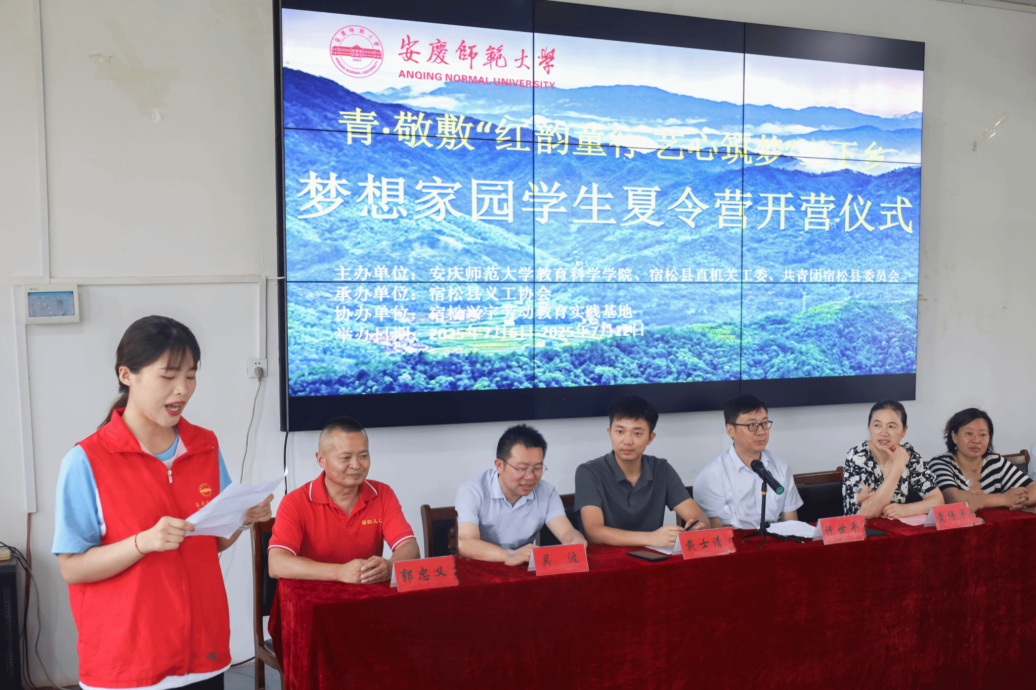 7月6日上午,2025年“红韵童行,艺心筑梦”暑期三下乡暨“梦想家园”夏令营开营仪式在安庆市宿松县兴宇劳动教育综合实践基地举行,太阳成集团122ccvip公司党委副书记、纪委书记许世平,宿松县委组织部副部长黄伟平,团县委书记戴士清,县华亭镇党委委员邓顶峰、县直机关工委科负责人吴波、实验中学党支部副书记吴金旺、县义工协会会长郭忠义出席开营仪式,实践团队、受助员工、义工协会会员等参加开营仪式。
