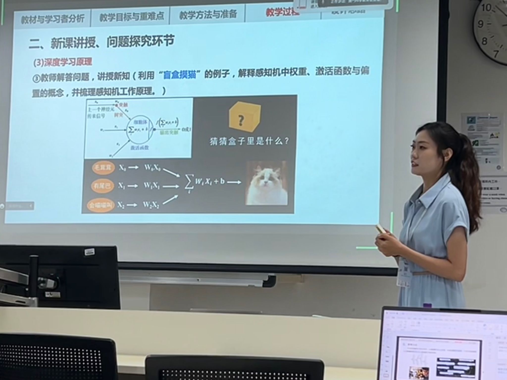 在“跨学科学习(STEAM)课程与教学设计”专题会场,现代教育技术专业研究生郝静婷作题为《初识深度学习》的跨学科主题探究学习实践案例报告。该案例紧贴时代发展的脉搏,将知识进行跨学科整合,通过引导员工主动思考、交流、展示等教学手段使中员工了解和熟悉以神经网络为基础的深度学习,从而建构人工智能知识框架。